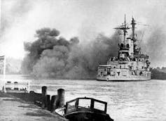 El acorazado Schleswig-Holstein bombardeando Polonia en septiembre de 1939.Wikimedia Commons