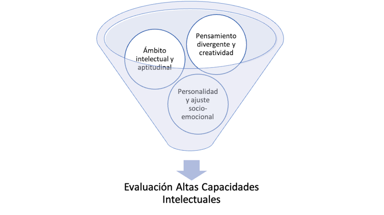 Además, si tenemos en cuenta la definición de altas capacidades, cualquier informe psicopedagógico debe recoger estos tres ámbitos de evaluación: el ámbito intelectual o aptitudinal, el pensamiento divergente y la creatividad y la personalidad y ajuste socioemocional.