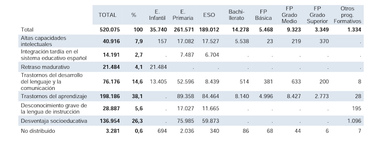 Esto puede verse reflejado en el gráfico que muestra el Ministerio de Educación y Formación Profesional español, donde nos encontramos a 40 916 niños y niñas con altas capacidades frente a 198 186 con trastornos de aprendizaje.