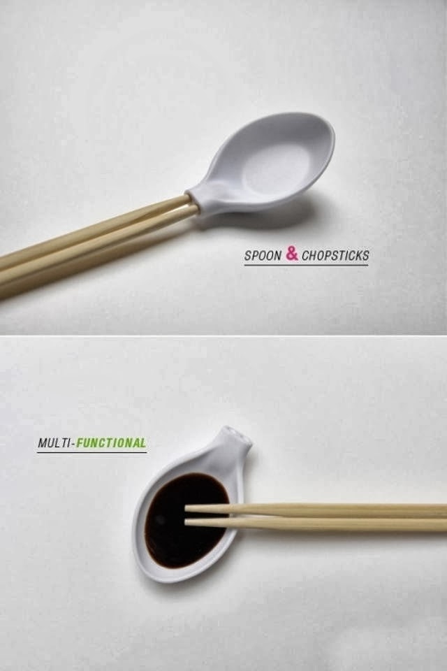 16. Palillos + cuchara: palillos chinos y cuchara todo en uno. Diseño de la idea aquí.