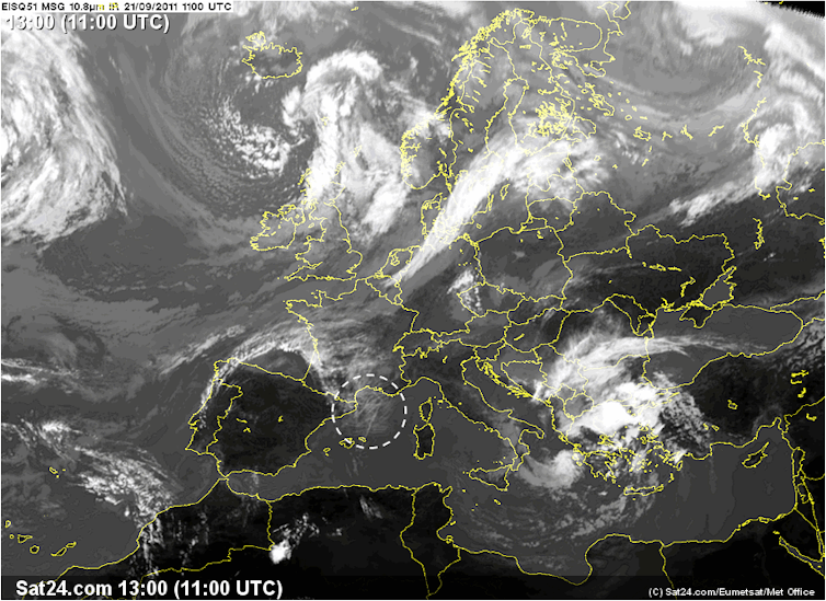 El día 21 de septiembre de 2012, el cielo sobre el golfo de León (extremo noroeste del Mediterráneo) quedó completamente cubierto por nubes altas (cirrus y cirrostratus) durante varias horas. Su formación no pudo ser predicha por los meteorólogos, ya que no tenía un origen natural: la causa fue la interacción de los gases de combustión de los aviones con el aire circundante.
