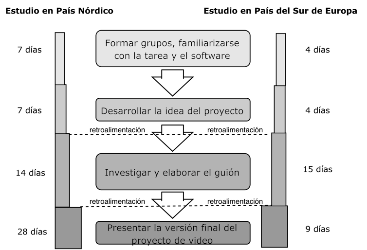 Procedimiento de la tarea en nuestro estudio.Los alumnos prepararon la tarea en ambos estudios siguiendo los mismos cuatro pasos. Sin embargo, los estudiantes tuvieron menos tiempo para preparar la tarea en la universidad del sur de Europa. El período lectivo en la universidad nórdica fue de agosto a diciembre, mientras que en el el sur de Europa fue de octubre a diciembre. Esto demuestra que es posible organizar esta tarea en diferentes plazos.