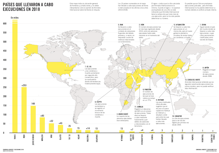 Por ejemplo, mientras el número de condenas a muerte descendió en algunos países de forma importante en 2018 (por ejemplo, en Kenia, Sierra Leona y Sudán del Sur), en otros ocurrió lo contrario (Egipto o Irak). En Estados Unidos (donde 30 estados y la jurisdicción federal mantienen la pena de muerte) se había observado desde 2007 una tendencia descendente tanto en el número de condenas como en el de ejecuciones, pero en 2017 y 2018 ambas magnitudes han vuelto a aumentar (si bien las cifras continúan en mínimos históricos).