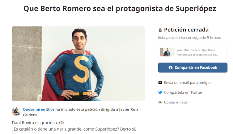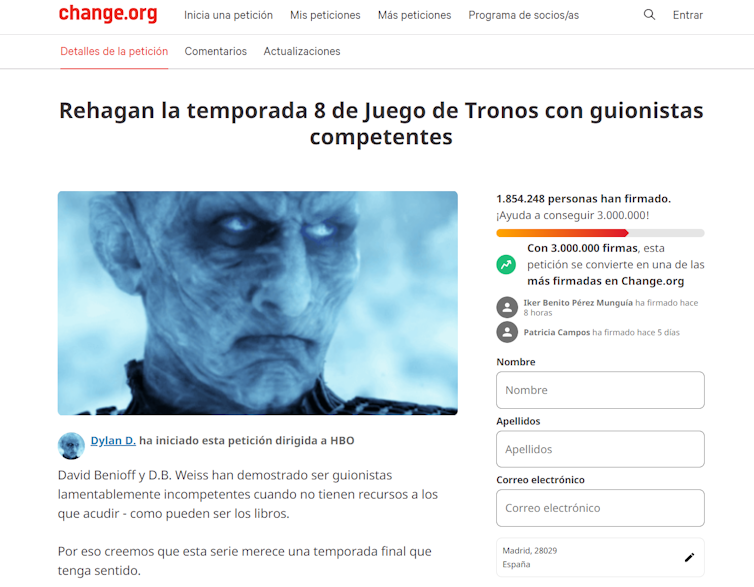 En primero lugar, hay que tener en cuenta que, tras un estudio realizado sobre las peticiones de cultura popular, se observa que las exitosas son escasas en la plataforma Change.org España –apenas un 10,6 % acaban en victoria–.
